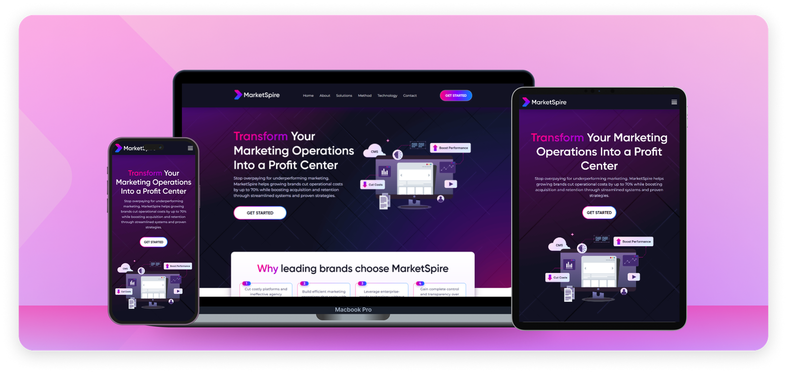 MarketSpire needed to establish a stronger market presence and credibility. Their existing website and branding did not fully communicate their promise of delivering enterprise-level marketing at a fraction of the cost. They required: